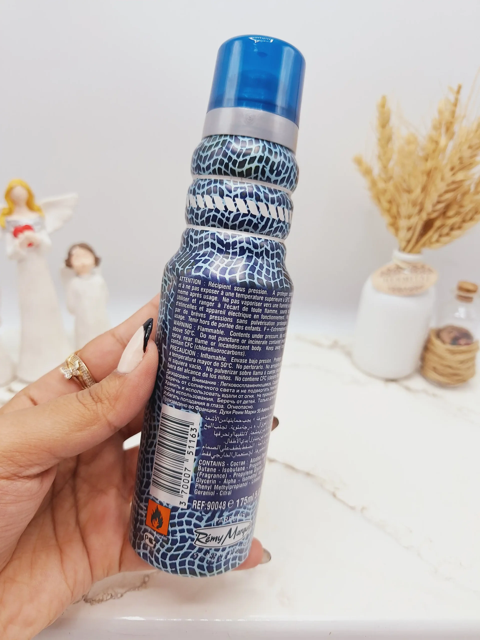 اگر چه اسپری‌ها به خاطر ذات گاز مانند خود ماندگاری کمتری به نسبت عطر و ادکلن دارند اما به جای آن پراکندگی بسیار بیشتری از ادکلن دارند و به همین دلیل برای از بین بردن بوی عرق بسیار مناسب هستند. اسپری شالیز آبی رمی مارکویس 175 میل رایحه آروماتیک و فوژه دارد پس اگر علاقه‌مند به این رایحه هستید، درست انتخاب کرده‌اید. از ویژگی‌های دیگر این دئودرانت، محافظت طولانی مدت از پوست و افزایش احساس شادابی در تمام طول روز، باقی نگذاشتن هیچ اثر سفیدی روی پارچه‌های تیره، تشکیل هاله‌های زرد روی پارچه‌های سبک را کاهش‌می‌دهد و تعریق را به مدت 48 ساعت تنظیم می‌کند.