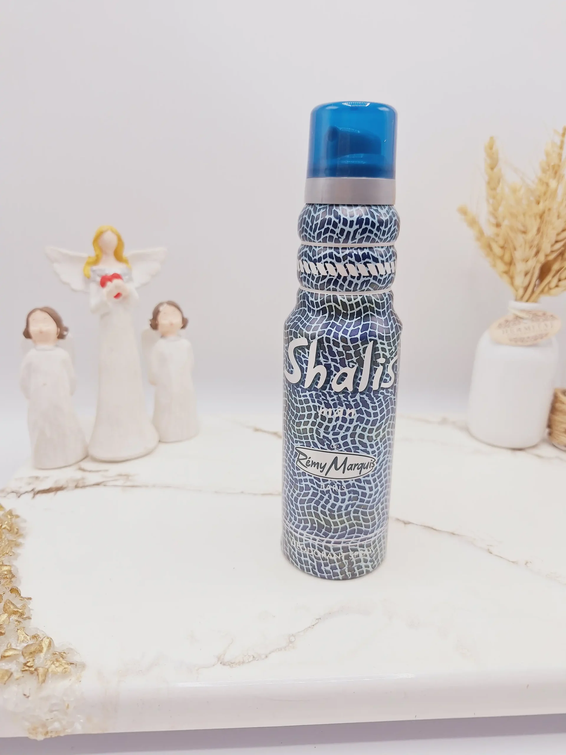 رایحه اسپری بدن رمی مارکوییز شالیز آبی خنک و ملایم است. اغلب مردان شوخ‌‌طبع و اجتماعی از این رایحه استقبال می‌کنند. اسپری‌ها معمولا برای تمام فصول به کار می‌روند. اسپری shalis man remy marquis بطری آبی رنگ، طرح پوست ماری و خوش‌دستی دارد و نام و برند اسپری با فونتی زیبا روی آن دیده می‌شود. درپوش این اسپری، آبی رنگ است که به زیبایی روی آن قرار گرفته است.