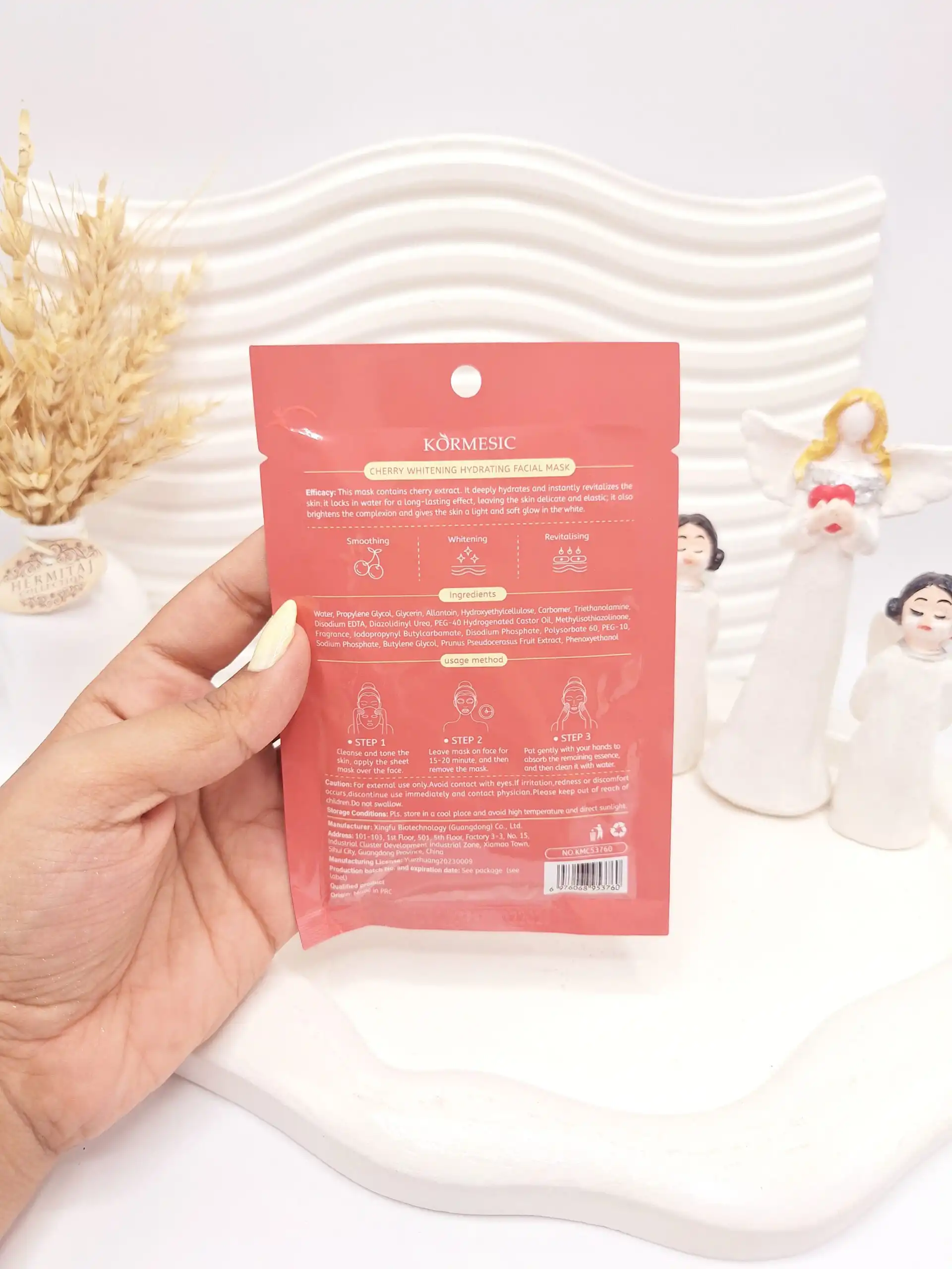 ماسک ورقهای گیلاس KORMESIC — روشنکننده، آبرسان و شادابکننده پوست؛ مناسب انواع پوست.